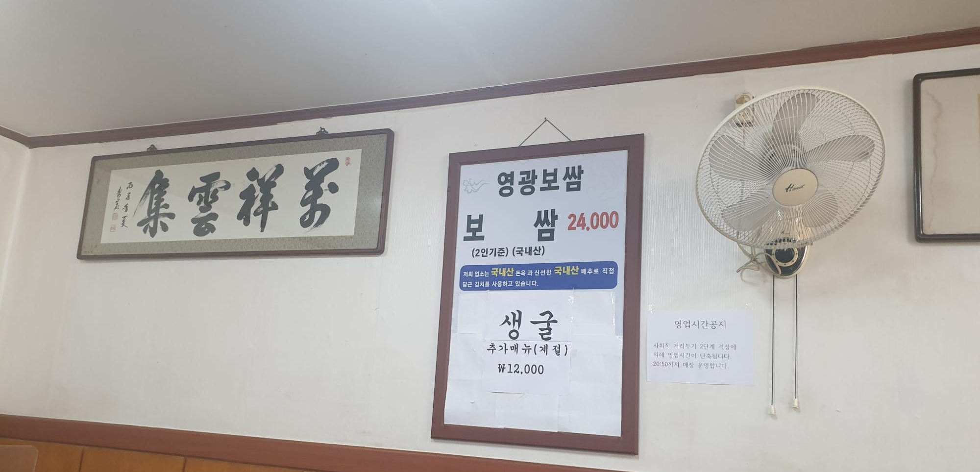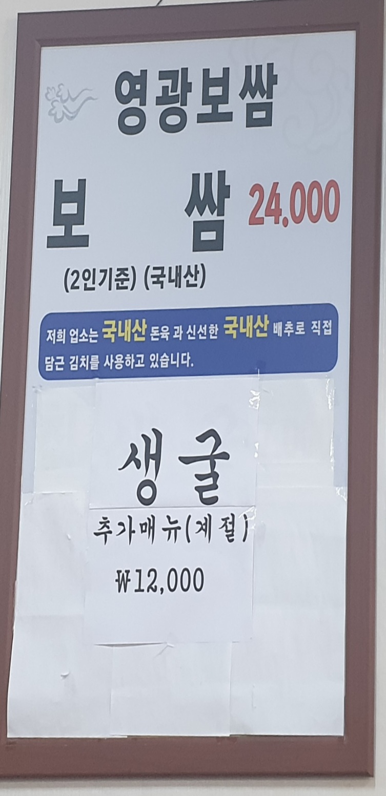 영광보쌈에서 충격받은 것은 바로 메뉴판이었습니다.